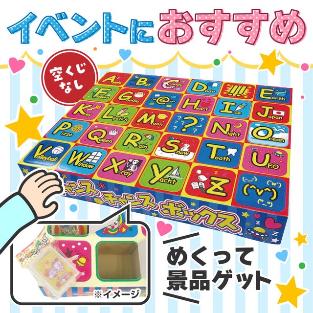 空くじなし!アルファベットの窓を開けると中におもちゃが入っています。 1ボックス30回分、男女共有で使えてお子さまが喜ぶものばかりです♪ 準備が必要なくすぐに始められて便利です! ●サイズ 本体:550×850×4400mm