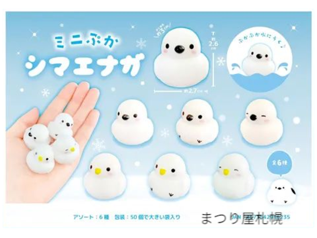 シマエナガのデザイン、ミニサイズのすくい人形です♥ ぷかぷか水に浮きますので、すくい遊びにおすすめです。 6種類をミックスして、計50個/袋での販売です。 ●サイズ 本体 縦2.6×横2.7(単位:センチ) ●カラー/バリエーション 6種類