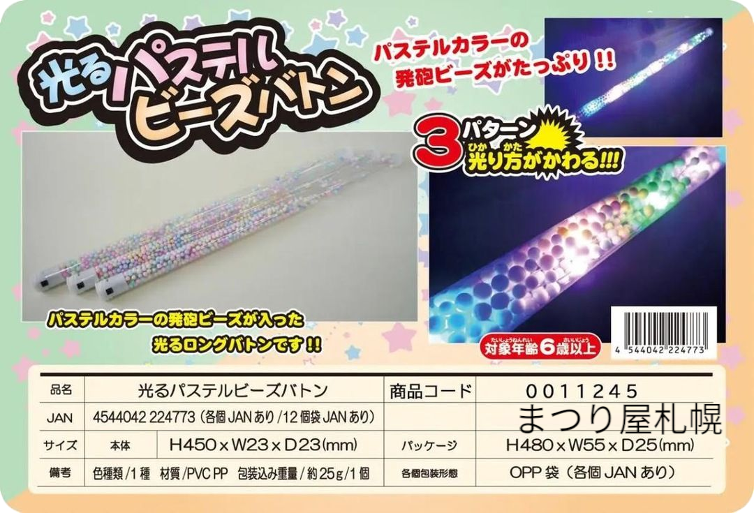 光る!パステルビーズバトン(12入)45cm