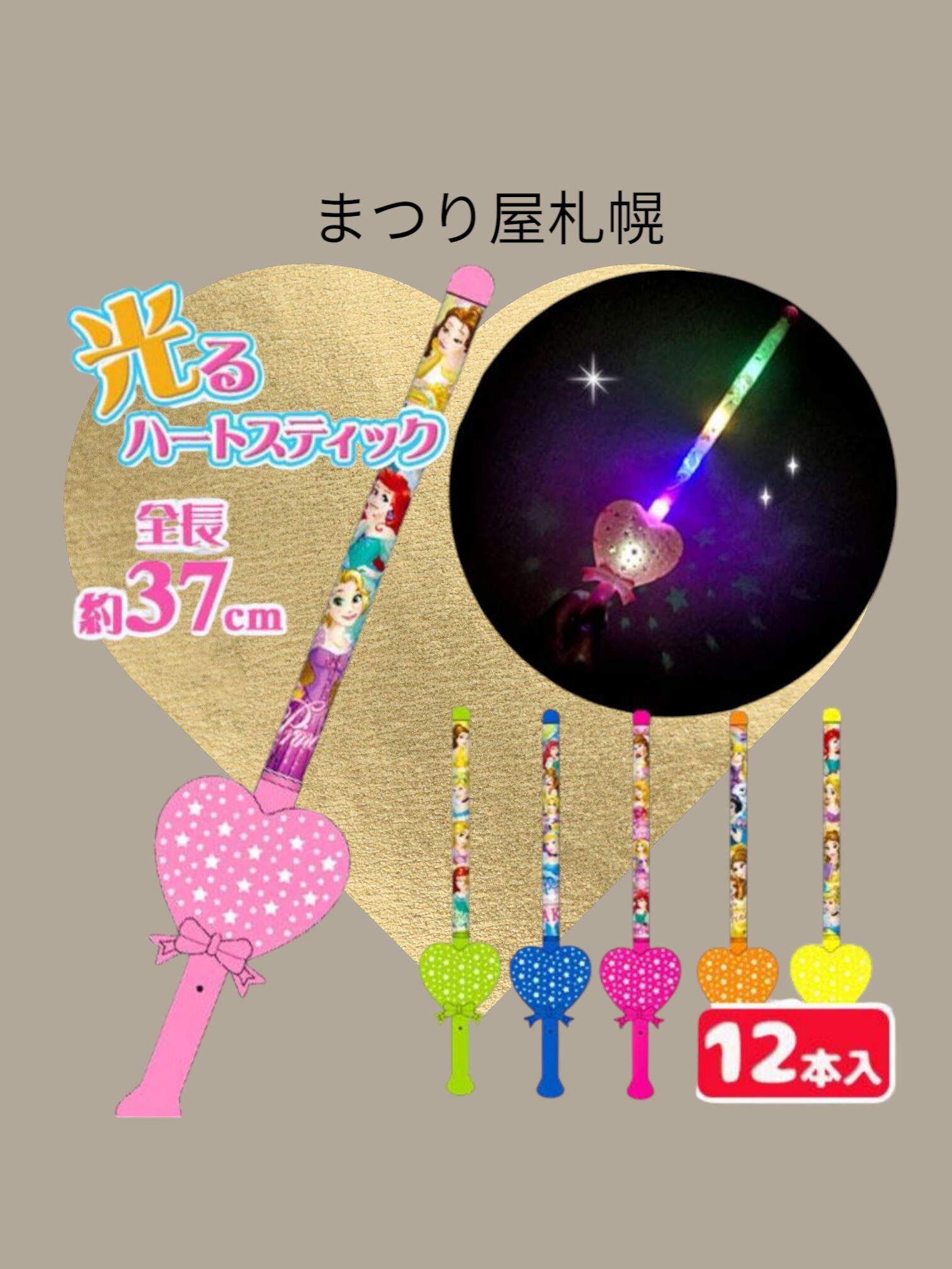 光るプリンセスハートスティック(12入)