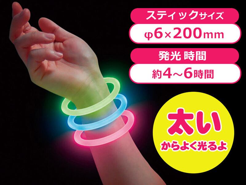 ブレスレットの直径が6mmと太いので力強く光ります!夏のお祭りやイベントや夏フェスにいかがでしょうか?
