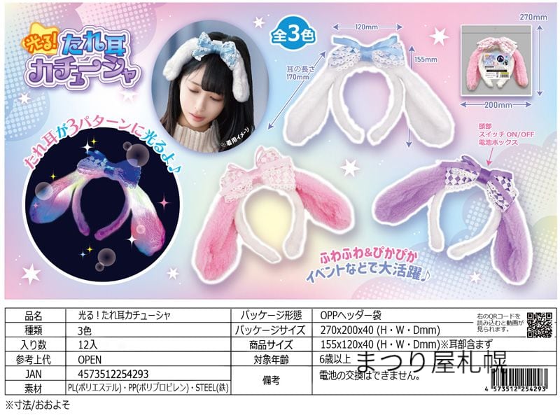 ●本体サイズ カチューシャ部分:約H155×W120×D40mm たれ耳部分:約170mm