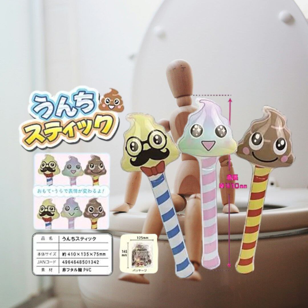 子ども達が大好きな可愛いうんちのビニールスティックです♥膨らませると約40㎝近くの大きさに! うんちの顔は全3種類。