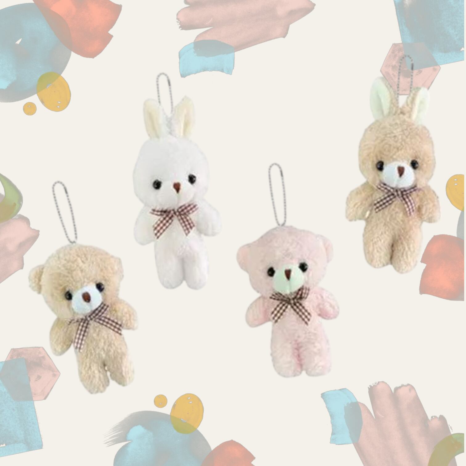 全長約14cm「くま・うさぎ」デザインの「くまちゃんうさちゃんもこもこぬいぐるみBC付」です。