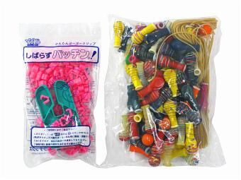 風船100個と糸ゴム100本としばらずパッチン100個のセットです。しばらずパッチンを使えば誰でも簡単にヨーヨー風船を作れます!