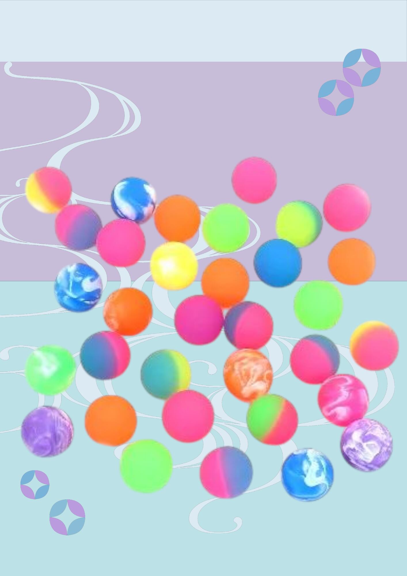 直径38mm。色・ツートンカラー・マーブル模様が入った「スーパーボールミックスアソート38mm」です。