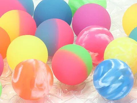 直径45mm。単色・ツートンカラー・マーブル模様が入った「スーパーボールミックス45mm」です。