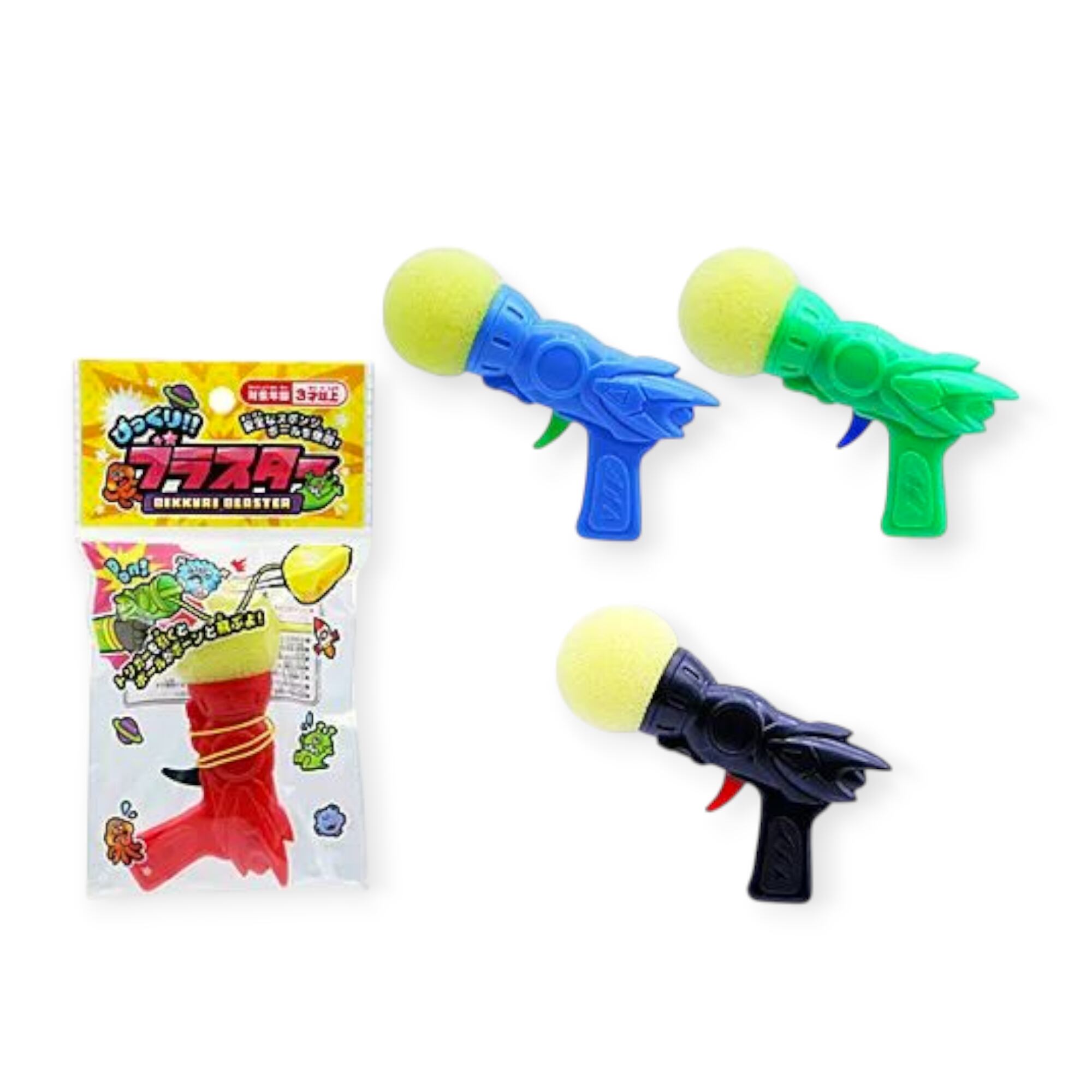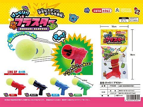 トリガーを引くとスポンジボールが飛び出すピストル型スポンジガン「びっくりブラスター」です。