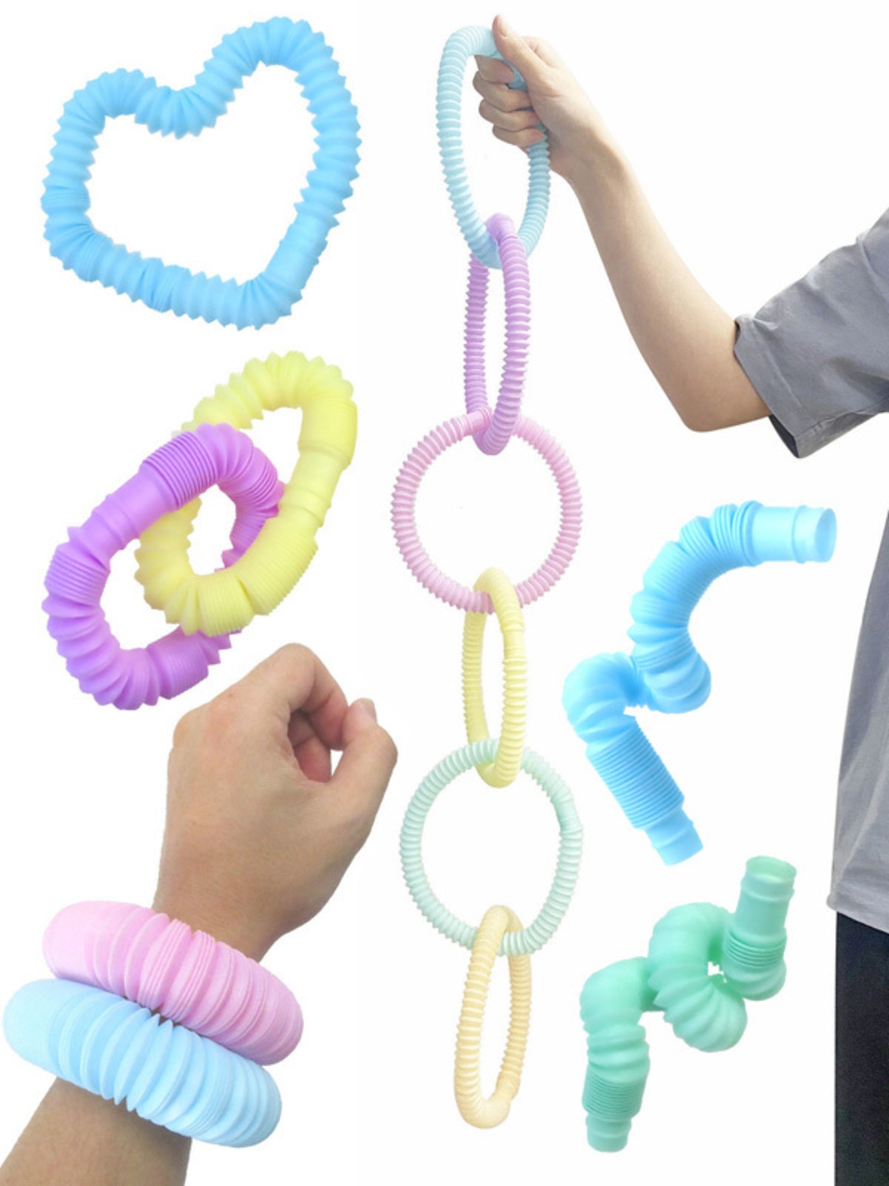 カラフルなチューブは曲げたり、伸ばしたり、ねじったり、つなげたり、振り回すことで不思議な音を楽しむことができます。