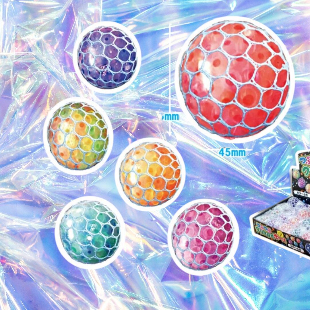 強く握るとネット袋からつぶつぶがムニュッと出てくるボールです♥