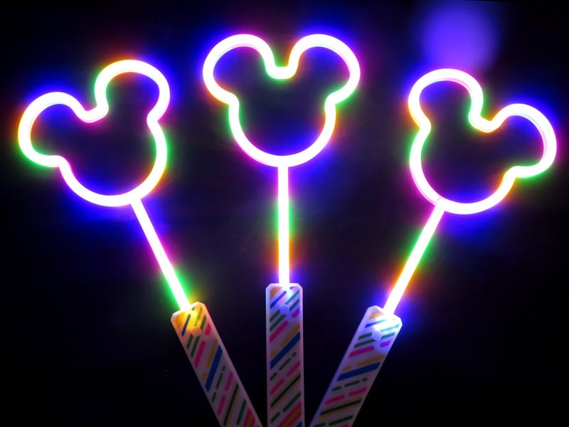 持ち手のボタンを押すと…スティック全体がカラフルに輝く!(光り方は3パターンに変化)。