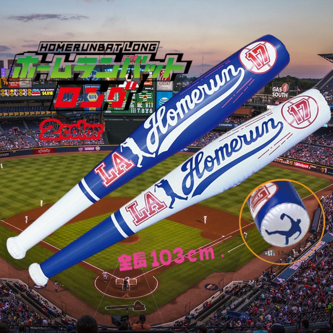 目を引く爽やかなブルーとホワイトの2カラー展開で、それぞれに「LA」や「Homerun」、バッターのシルエットが描かれたスタイリッシュなプリントがあしらわれています。
