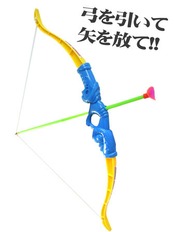おもちゃの弓矢です。誰でも簡単に弓を射れます。先に吸盤が付いているのでウマく飛ばせば壁やガラスにペタっとくっつきます。