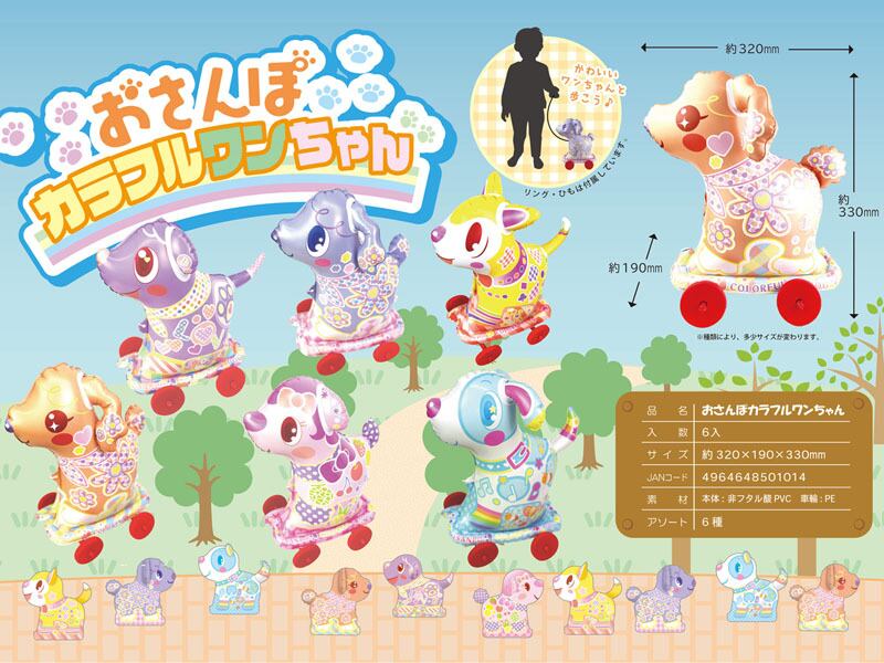 カラフルな色合いが楽しいビニールお散歩犬シリーズに【おさんぽカラフルワンちゃん】です♥
