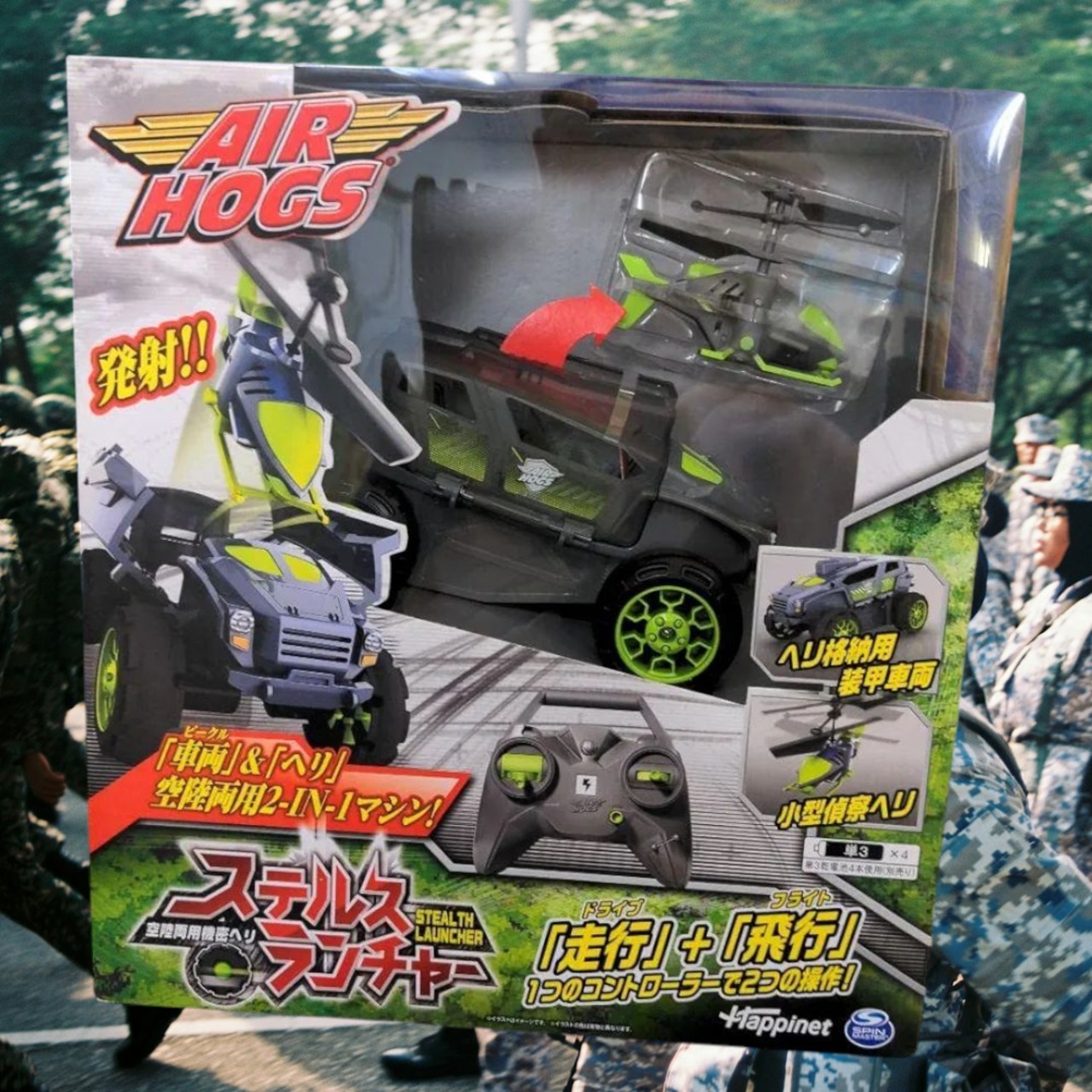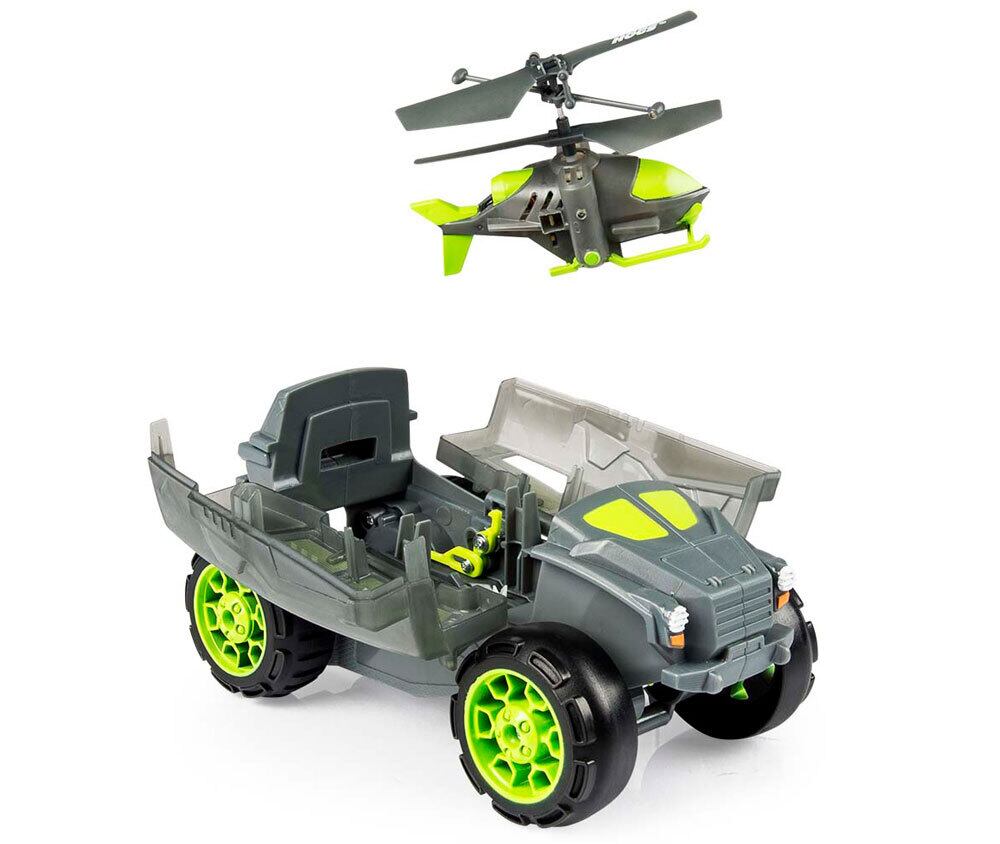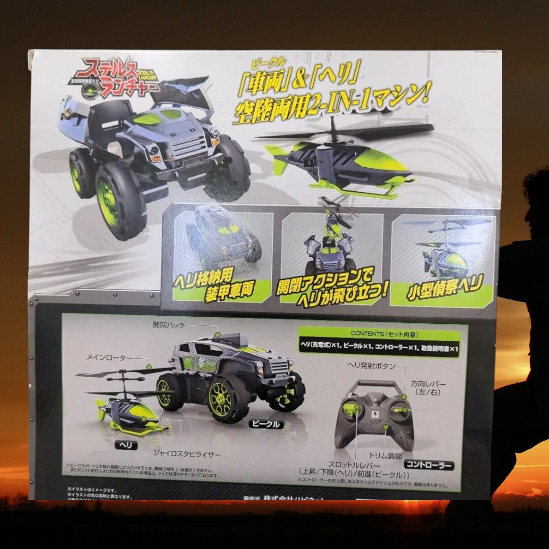 トラックで走行します。荷台のヘリを射出し、そして飛行します。3つのスーパーギミック搭載RC!