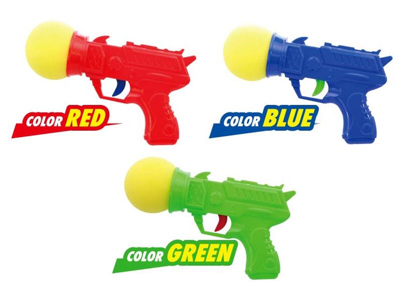 トリガーを引けばスポンジ製の弾がポーンと発射します。引き金を引くと、やわらか素材のスポンジボールが飛び出します。