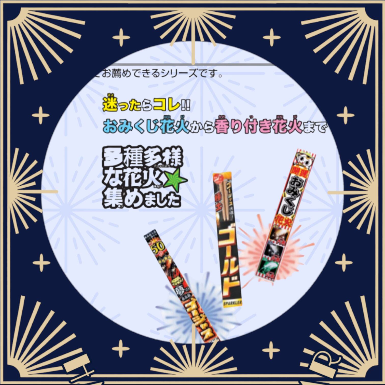 定番花火やおみくじ花火、長く遊べる花火、ゴージャス花火など厳選された花火が盛りだくさん!